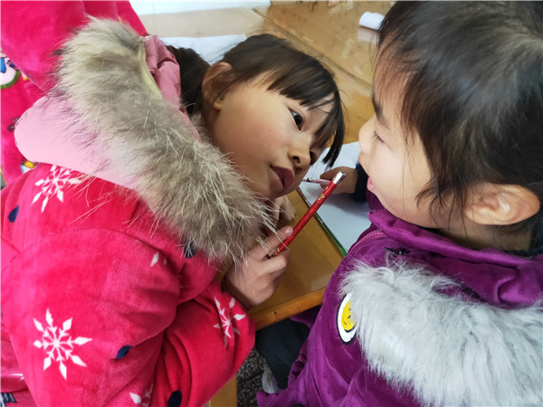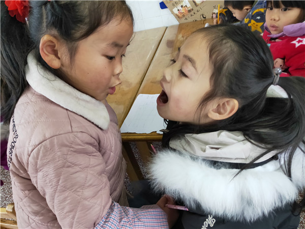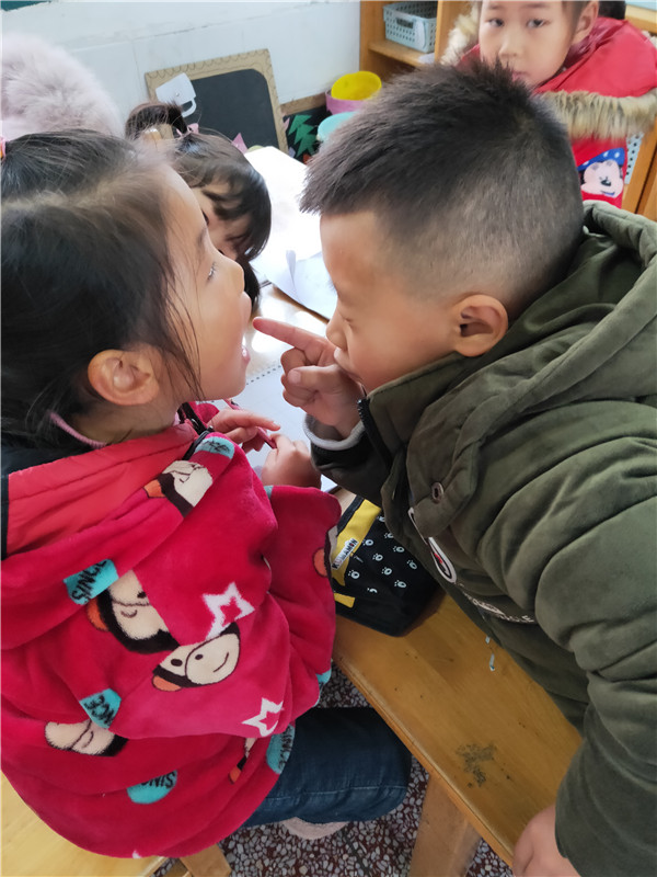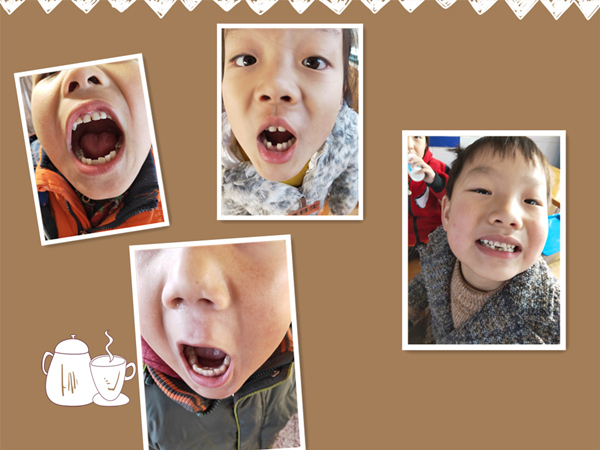 “为什么你的牙齿这么少?”亮亮指着天天的牙齿。