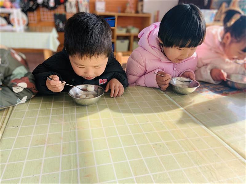 “冬至到,冬至到;南馄饨,北方饺;暖暖和和吃一碗,保你耳朵冻不掉。”一首儿歌《冬至到》开启了今天热闹的冬至日。你们看,各班老师正在向孩子们介绍冬至的由来、意义、以及各地区的风俗习惯。“我今天吃的饺子。”“我吃的汤圆。”,孩子们积极讨论,在学习与交流中感受中华民族的传统节日。