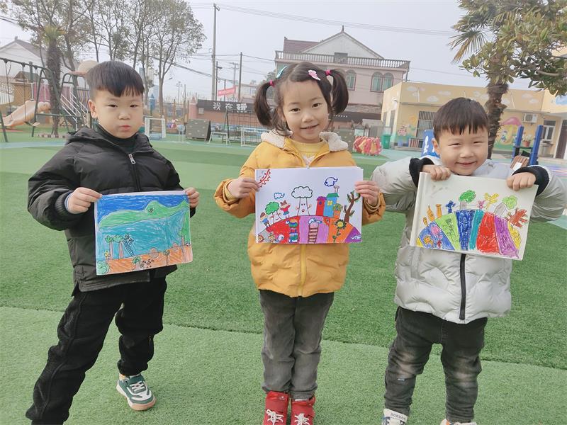 绿色家园画起来。孩子们拿起画笔,发挥自己的奇思妙想,认真地描绘心中的“绿色家园”。一幅幅生动的画面,像一个个跳动的音符,表达了他们对美好家园的喜爱。
